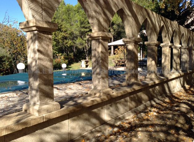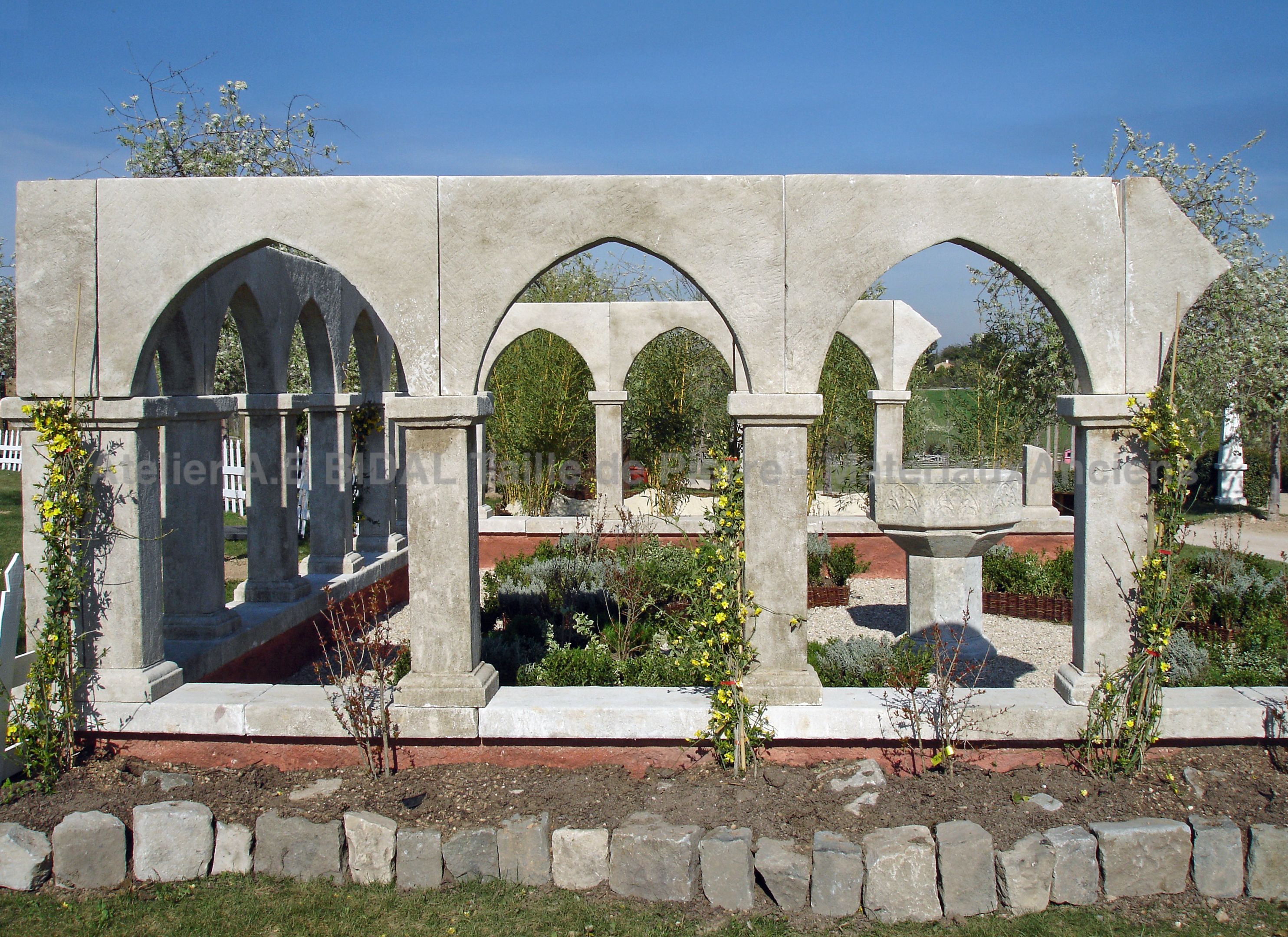 Réalisation sur mesure d'un cloître en pierre naturelle de taille selon vos critères (style, dimensions, patine, vieillissement, type de pierre ...).